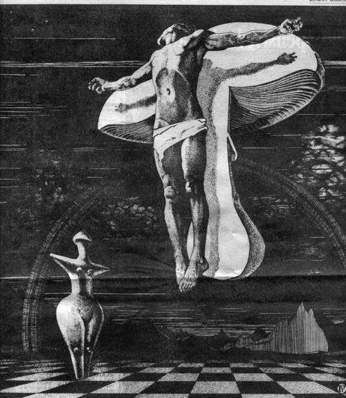 Archeologist John M. Allegro wrote a book called The Sacred Mushroom and The Cross in which he proposed that the New Testament was written as a way for fertility cults to pass down information about how to utilize magic mushrooms to commune with God, and subsequent translations rewrote the story for their own purposes. I first found out about it from this video where an interviewer asked Allegro, “I’m puzzled, are you really seriously suggesting that Jesus Christ was a mushroom?” “Put pretty blankly,” Allegro responds, “yes.” Allegro, who was famous for his work on the Dead Sea Scrolls, was discredited and humiliated for his blasphemy, but I love its goofiness. I also think it contains a kernel of ecstatic truth, which is that mushrooms help us commune with nature as divine. And what if we believed Nature was our God? How would we behave then? On the riverbank in Oregon, I remembered why it’s important to slow down and observe the natural world and how to sit in awe. In day-to-day life, most of our senses are not fully engaged, which protects us from the onslaught of experience, but mushrooms swing the doors of perception and empathy open. We are connected to a web of life. We are infinitesimally small, and the world is more vast, complex, and diverse than we will ever know. “All is one.” “Heal earth”. And then I fell asleep.